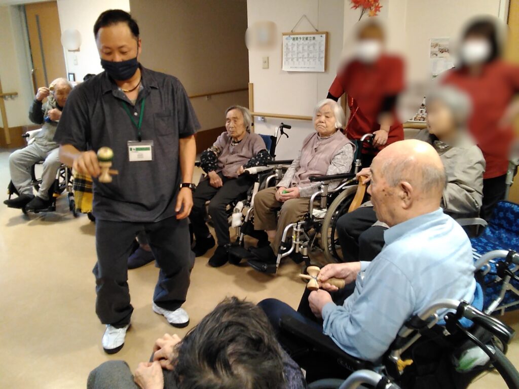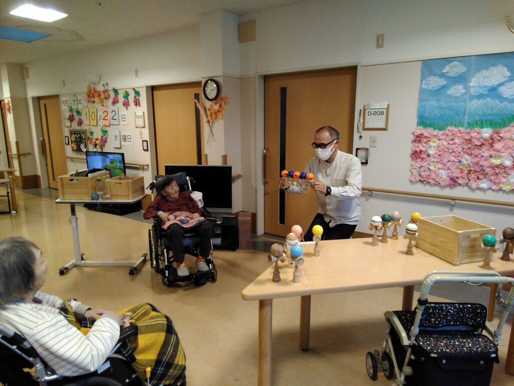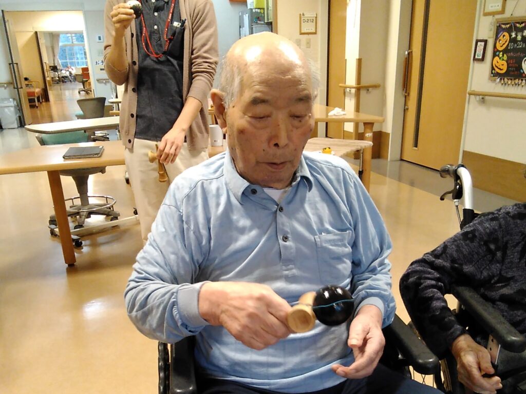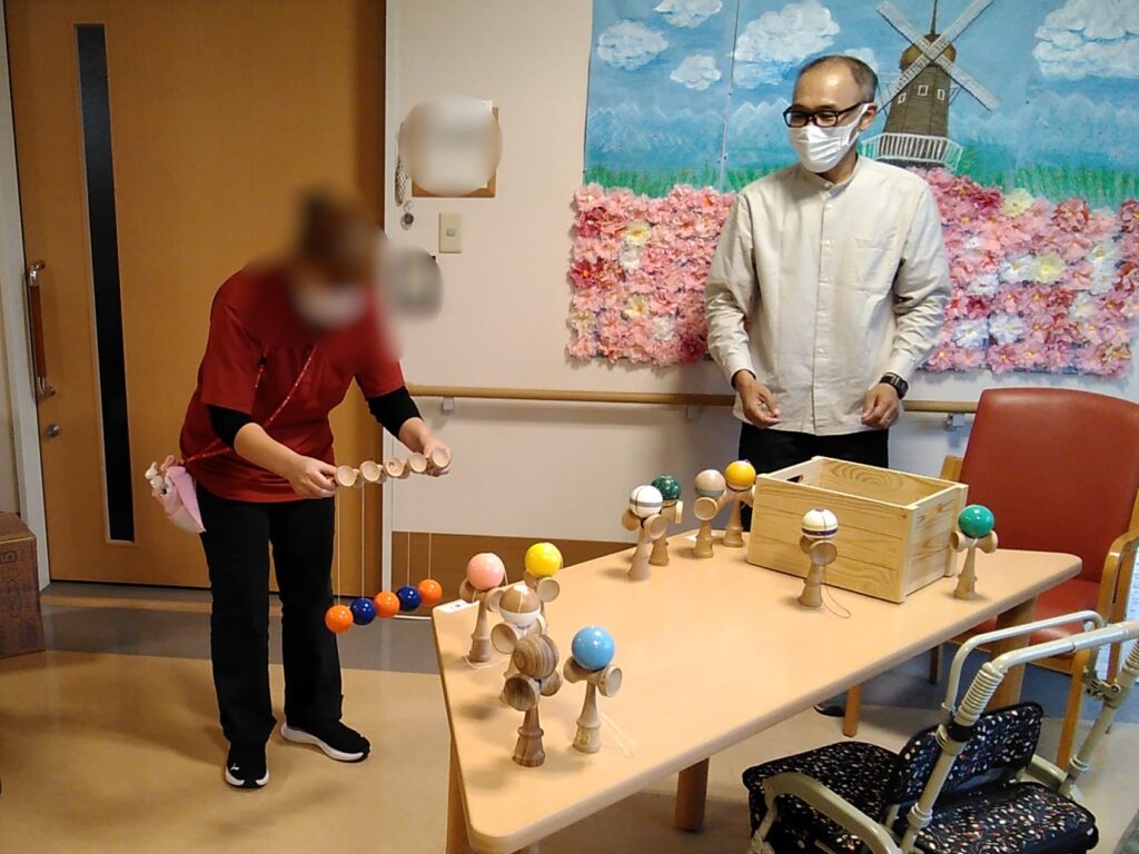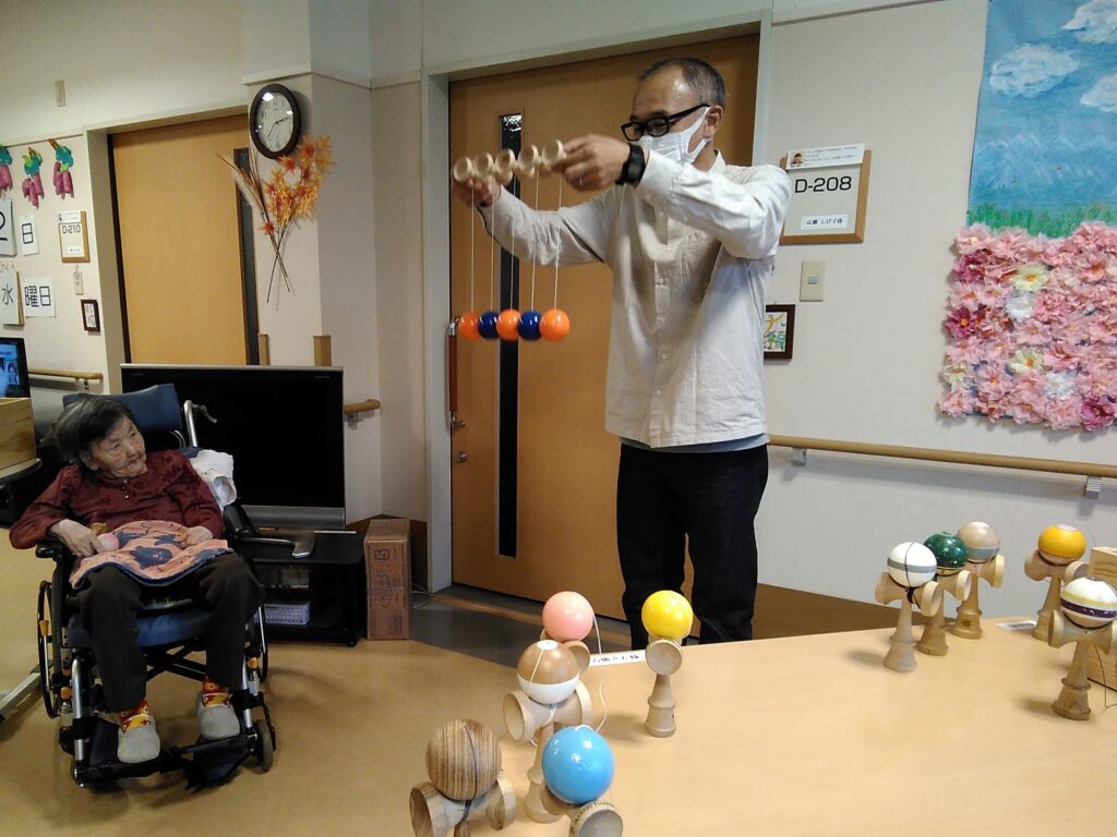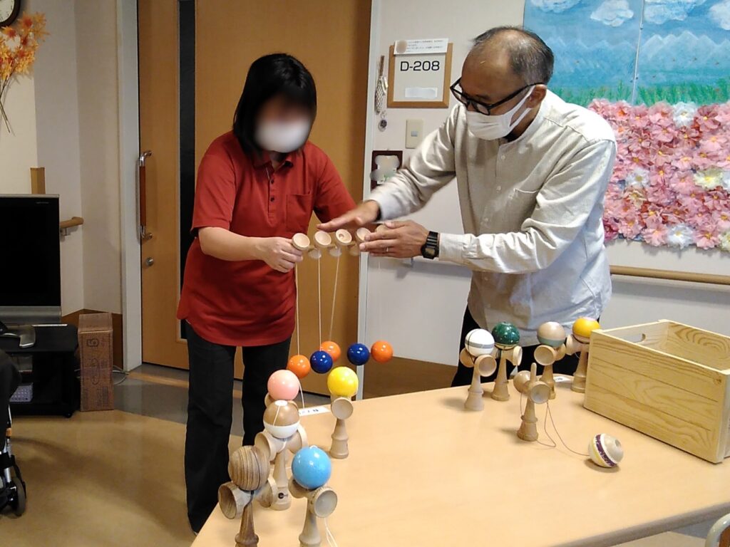 利用者様を差し置いて職員が5連けん玉に夢中に!!
