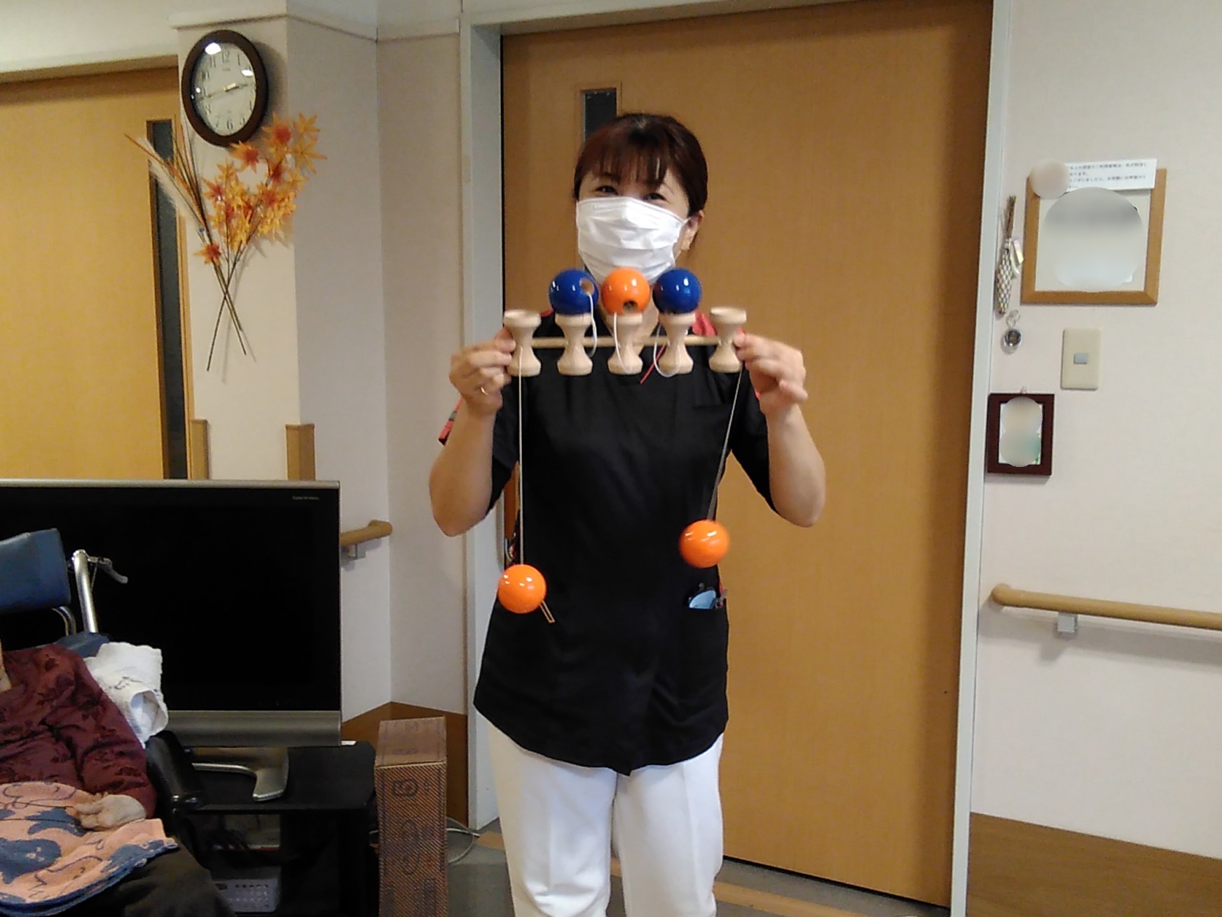 利用者様を差し置いて職員が5連けん玉に夢中に!!