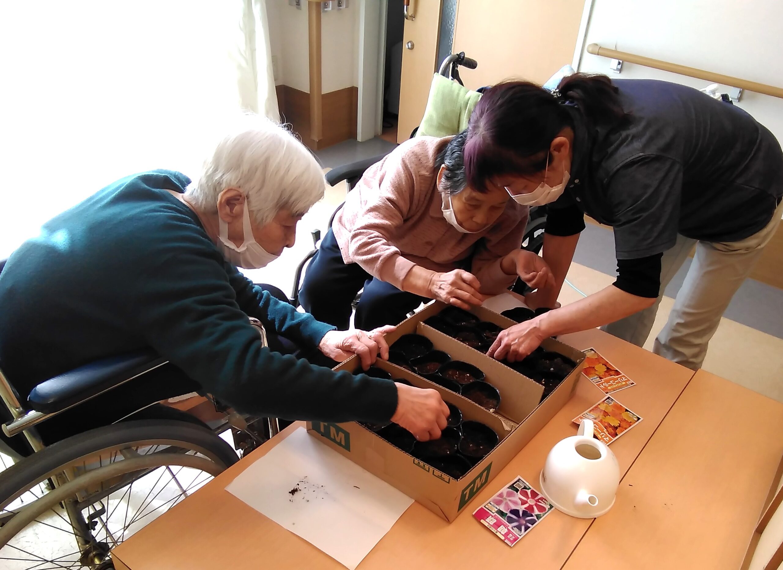 卒寿(90歳)の方2名、百一賀(101歳)の方1名をお祝いし、施設長から賞状を渡して表彰を行いました。