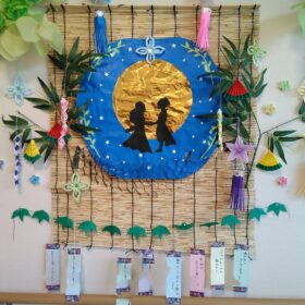 一緒に折り紙を折ったり、飾りをつけてもらうのを手伝ってもらったりしました。