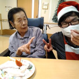 利用者様に手や膝をさすりながら『頑張って』『長生きして』『今日会えてよかった』と。
