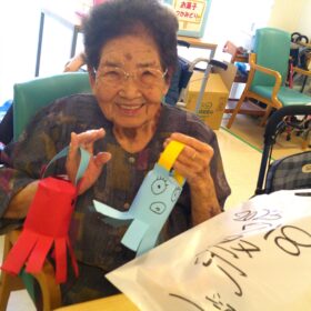 ショートステイでは、8月の行事で流しそうめんを行いました。初めて行った行事ですが、利用者の皆様は器用にそうめんをすくい召し上がっていました。そうめんをすくう姿は誰もが真剣な表情でした。そうめんの他にもミカンなどの果物も流れてきて驚きながらも楽しく行う事が出来ました♬