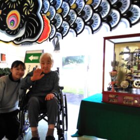 デイサービスでは、東京オリンピック開催に合わせてアネックスでのオリンピックという事で、『アネリンピック』と名付け本日、開会式を行いました。朝から、皆で手作りした聖火トーチを玄関からフロアまで持ってきてもらいました。皆さん写真撮影にも笑顔で応じてくれました。