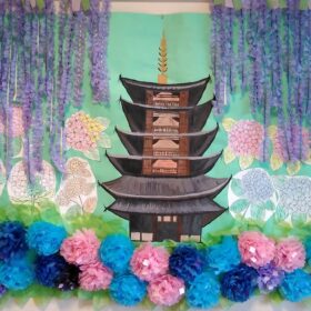 風船にちぎった折り紙を貼って何を作ってるんでしょう?