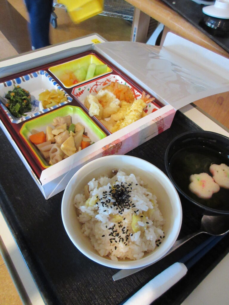 行事食 🥄 :栗ご飯🌰 天ぷら🦐 フルーツ盛り合せ🍊