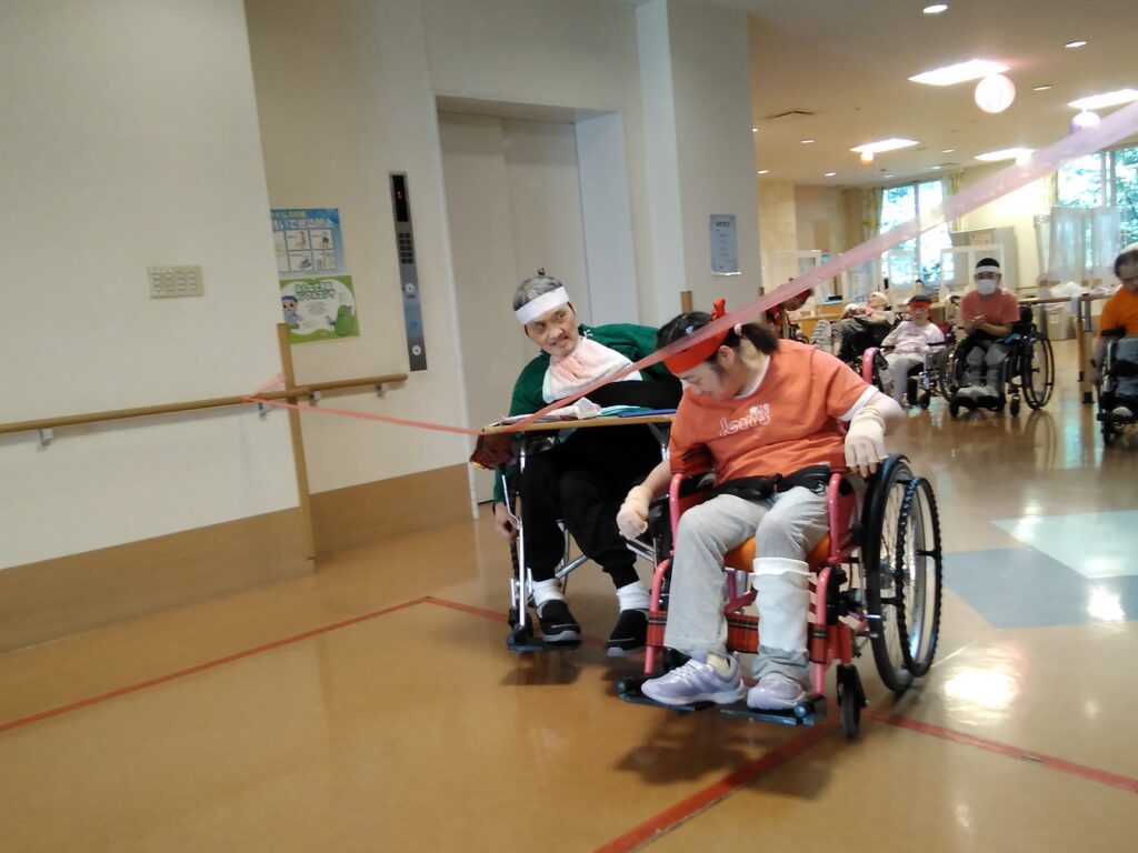 1週間ごとに競技を変え、利用者の皆さんも普段は中々やらない競技に熱中! 鉢巻を巻きチームで協力して競技へ集中されていました。勝ったチームも負けたチームの皆さんも、また来年頑張って下さい!!