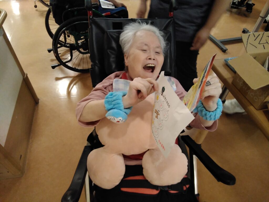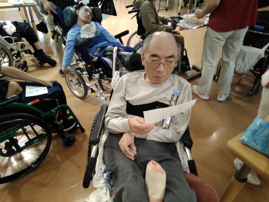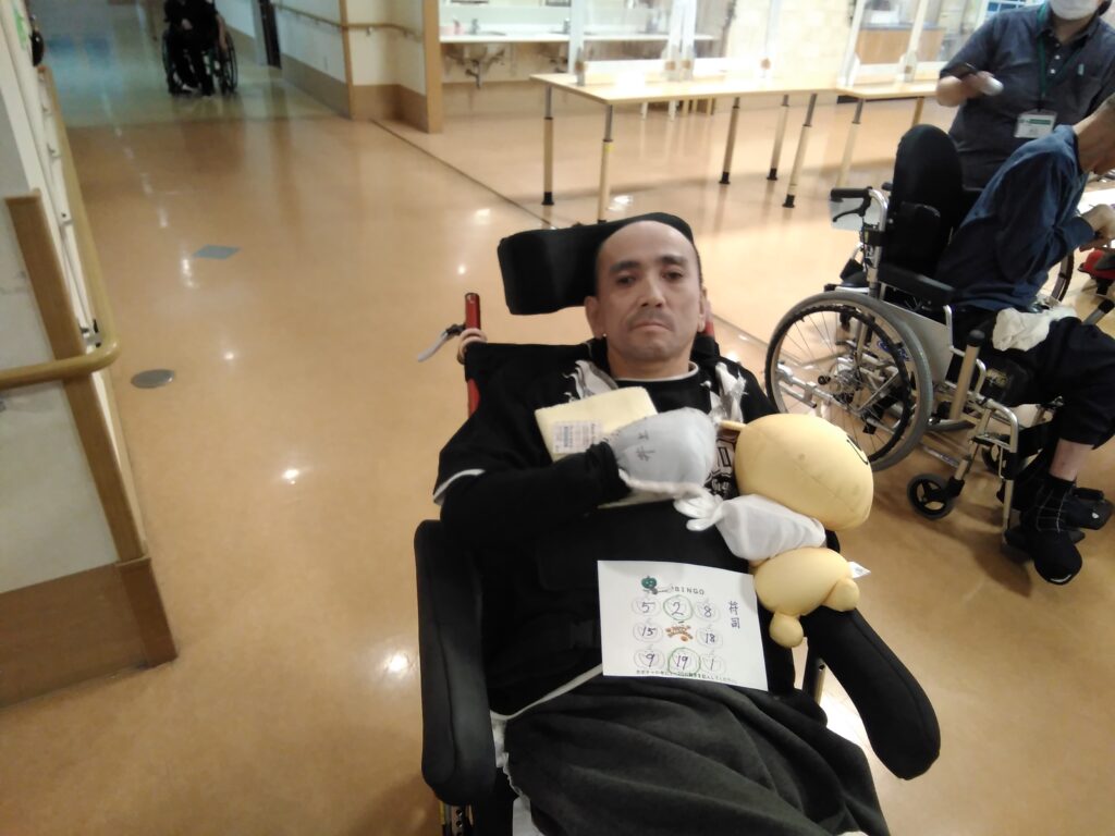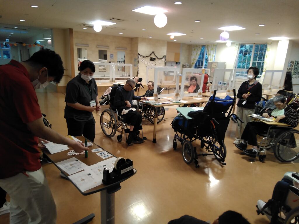 当日は数字が書いたカードを利用者に引いてもらい、それを読み上げて進行しました。