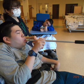 卓上ボッチャでは、景品がかかっていた為、気合いの入っている利用者様が多かったように思います。職員よりも利用者様の方が上手なんです。