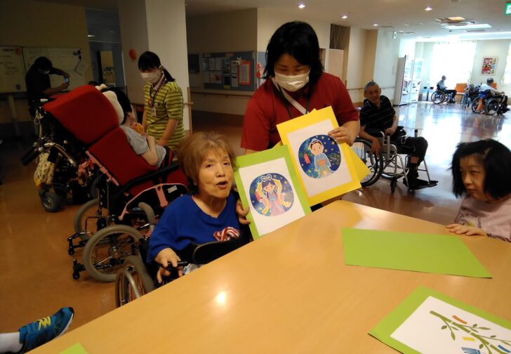 今回はゲーム合わせを行いました。 織姫と彦星のカードをペアに出来た方は大……
