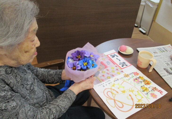 敬老の日に施設で敬老会を行いました。当施設での最高齢は101歳のご利用者様……